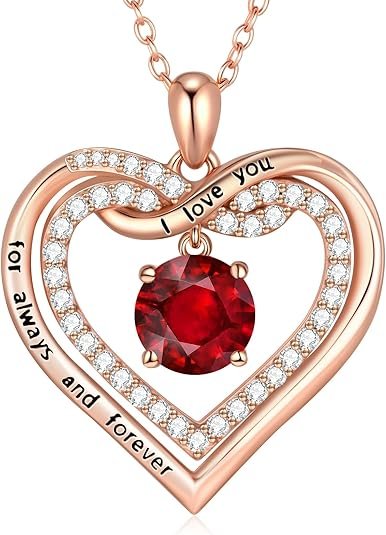 G&GEMSJEW Infinity Heart Birthstone Necklaces for Women, Birthday Jewelry Valentine's Day Gifts for Wife/Girlfriend, Pendant Heart Necklaces Anniversary Christmas for Women Wife Mom Girlfriend Lady