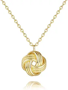 Gold Pendant Necklace 14K Gold Necklaces for Women Love Knot Necklace Artistic Knot Design with Stamped Textures Interlocking Circle Pendant Necklaces for Women Trendy
