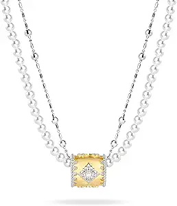 D-POW Pearl Necklaces for Women S925 Sterling Silver Necklace Layered Necklaces for Women Trendy Dainty Clover Pendant for Women Vintage Jewelry Gifts